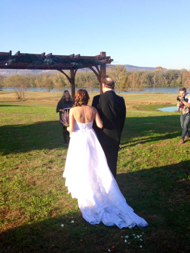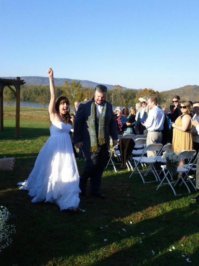 The bride walked down the aisle in a beautiful 70-degree day. A friend played “You are My Sunshine” with modified lyrics on guitar and the beautiful bride was weeping all the way down. Keep it together, Jennifer, I thought, along with what have I gotten myself into?