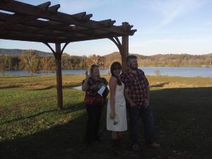 This newfound knowledge gave me a great perspective for the next day. Thankfully both bride and groom are very laid back. Still, nerves were high for everyone. The bride’s mother had just passed away only a week or so before. So she was on the bride’s mind and mine. I wanted to honor her mother as best I could. I wrote her engagement ring into the ring exchange hoping we could bring her mother into the ceremony.