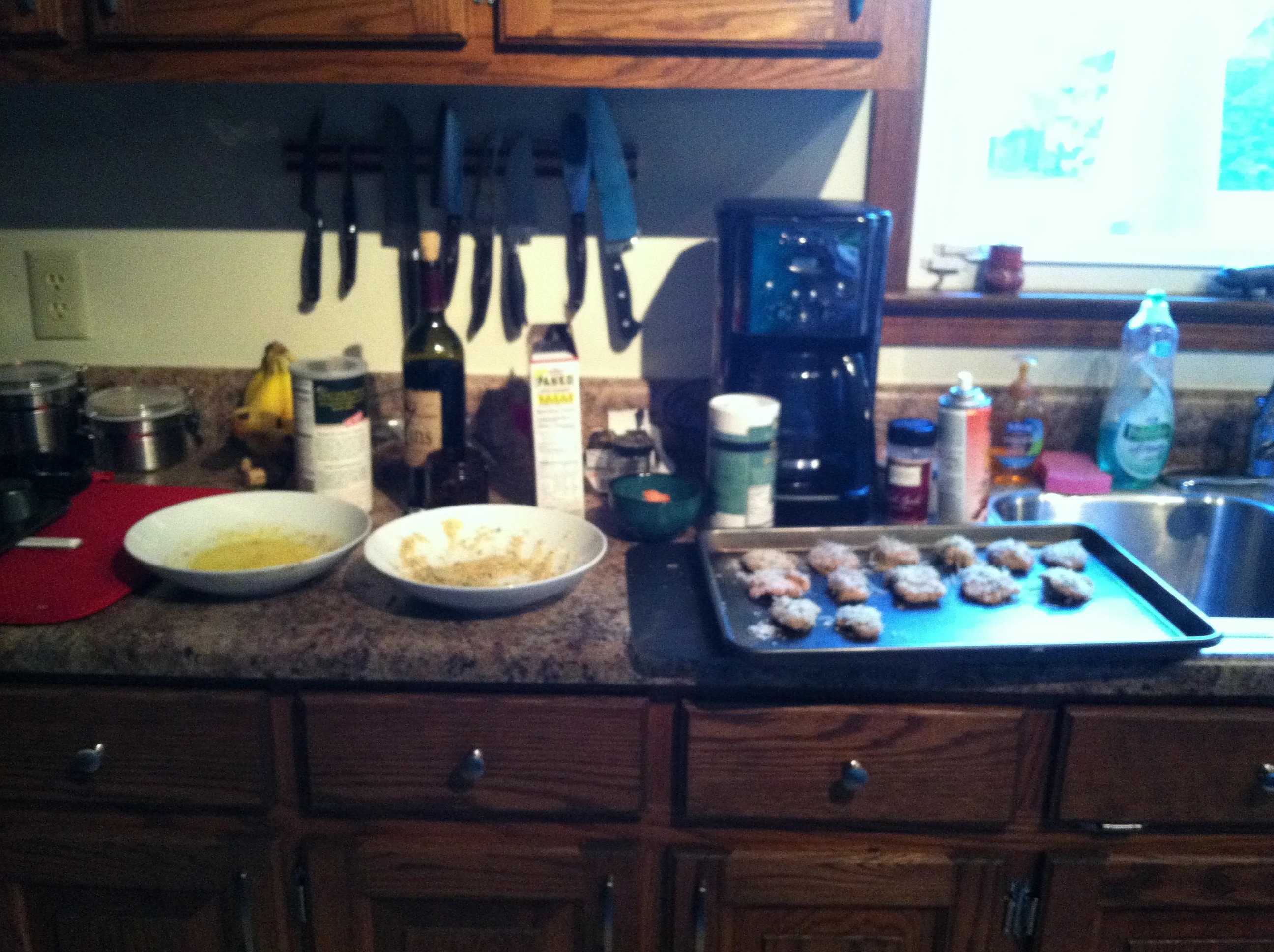 Earlier this week I made brinner and followed a recipe for healthy french toast, or brioche as we like to call it when we think we’re French. This time I used some pureed squash and carrots and mixed in with the wheat bread, flax meal,eggs, cinnamon, dash of vanilla and he thankfully ate it up! Yay. but of course the very next meal was fish sticks and tater tots.