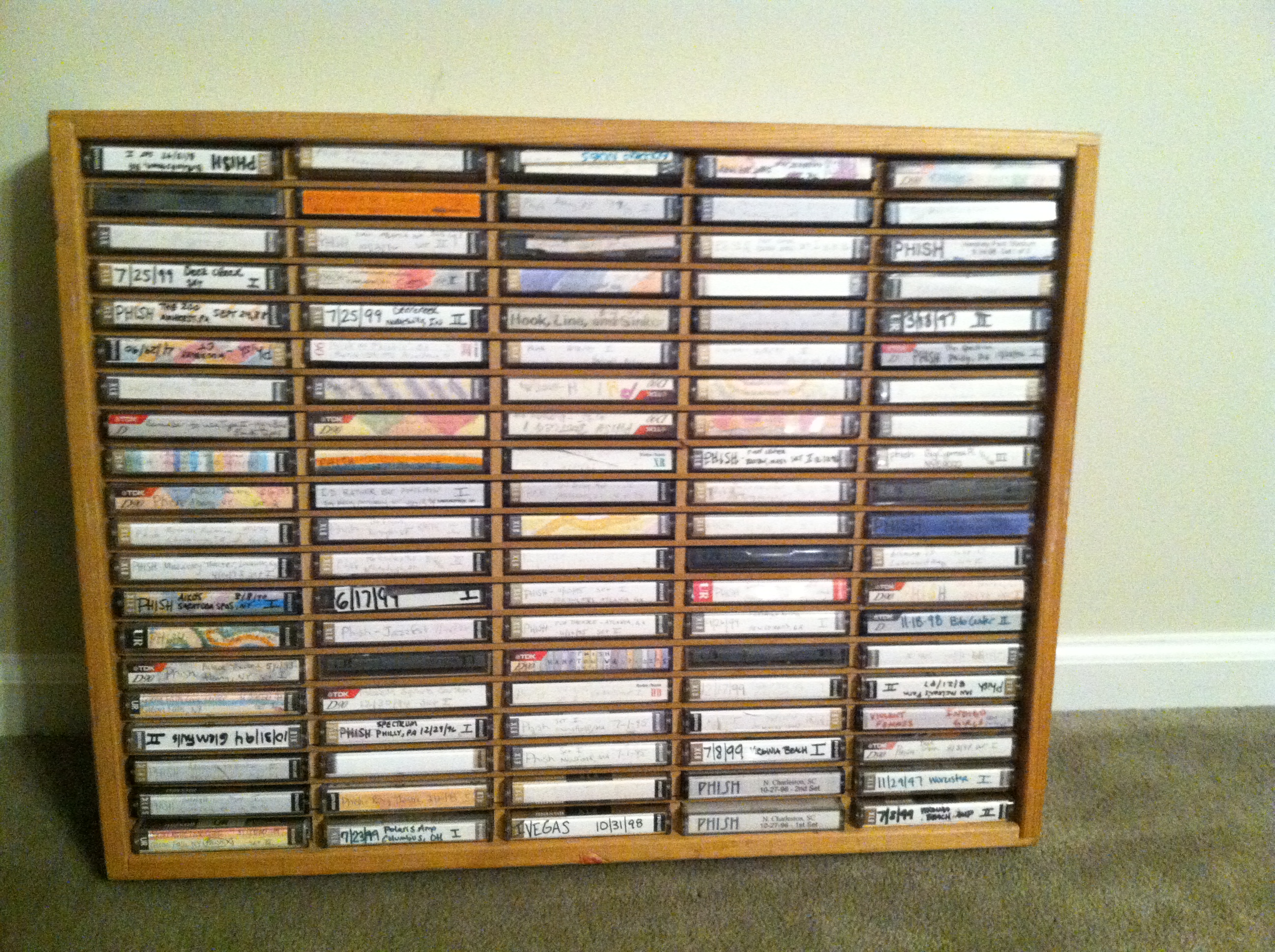 While you disbanded for the second time (well the first was a planned hiatus so not sure it’s really counting as disbanding) you guys had to grow up, and I had to “grow up.” My dad used to ask me that all the time. He loathed the fact that I had more ticket stubs from Phish shows than I did cute outfits. He once called my ticket stub scrapbook a receipt book for all the money I wasted. To me, it was an instant photograph of memories. But during your time away, I guess I did grow up. But I did not grow out of love with Phish. I met a man I later married, who did not know of your greatness but has since been converted, and I bought a couple houses, found my dream job, had a kid and became more “normal,” I suppose. But I still have my wooden, 100-compartment tape deck, my Radio City poster, my Billy Breathes sheet music book and all the other memorabilia that makes me feel 19 again. People tell me they got rid of their tapes, their CDs even, and are now completely digital with their Phish catalog. But I cannot ever part with those tapes. All those hours of mailing B&Ps, writing out the J-cards, trading in the parking lots and getting excited to get a 1st gen tape leaves me unable to just throw them away. Like today’s newspapers, I recognize Phish tapes are a dying medium for listening to music, but I still have them and every now and again pull one out.